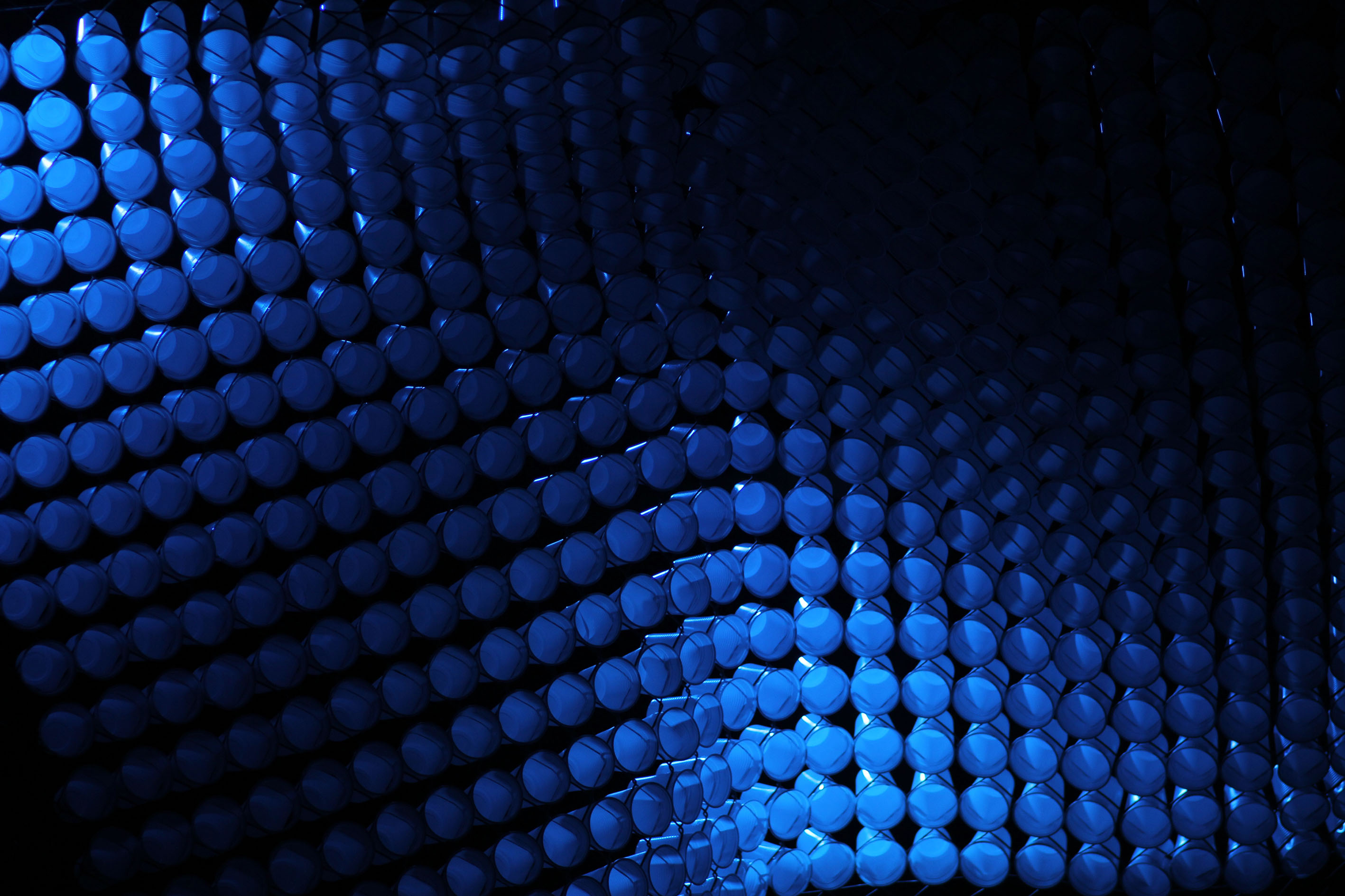 Structure en grillage et gobelets en plastique.