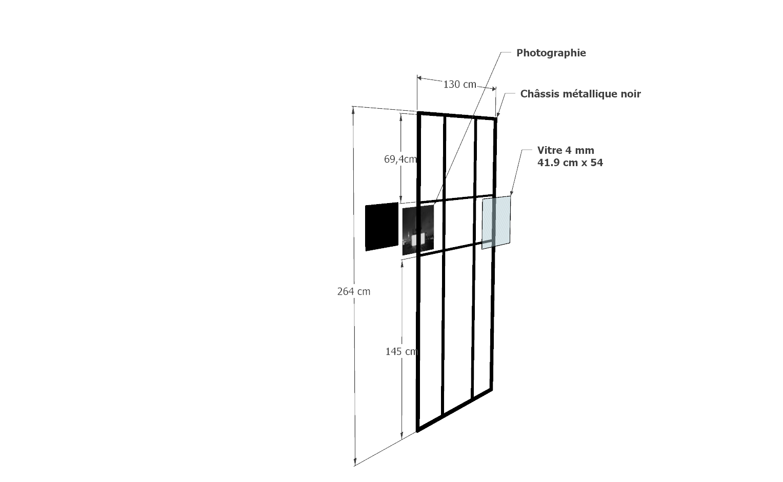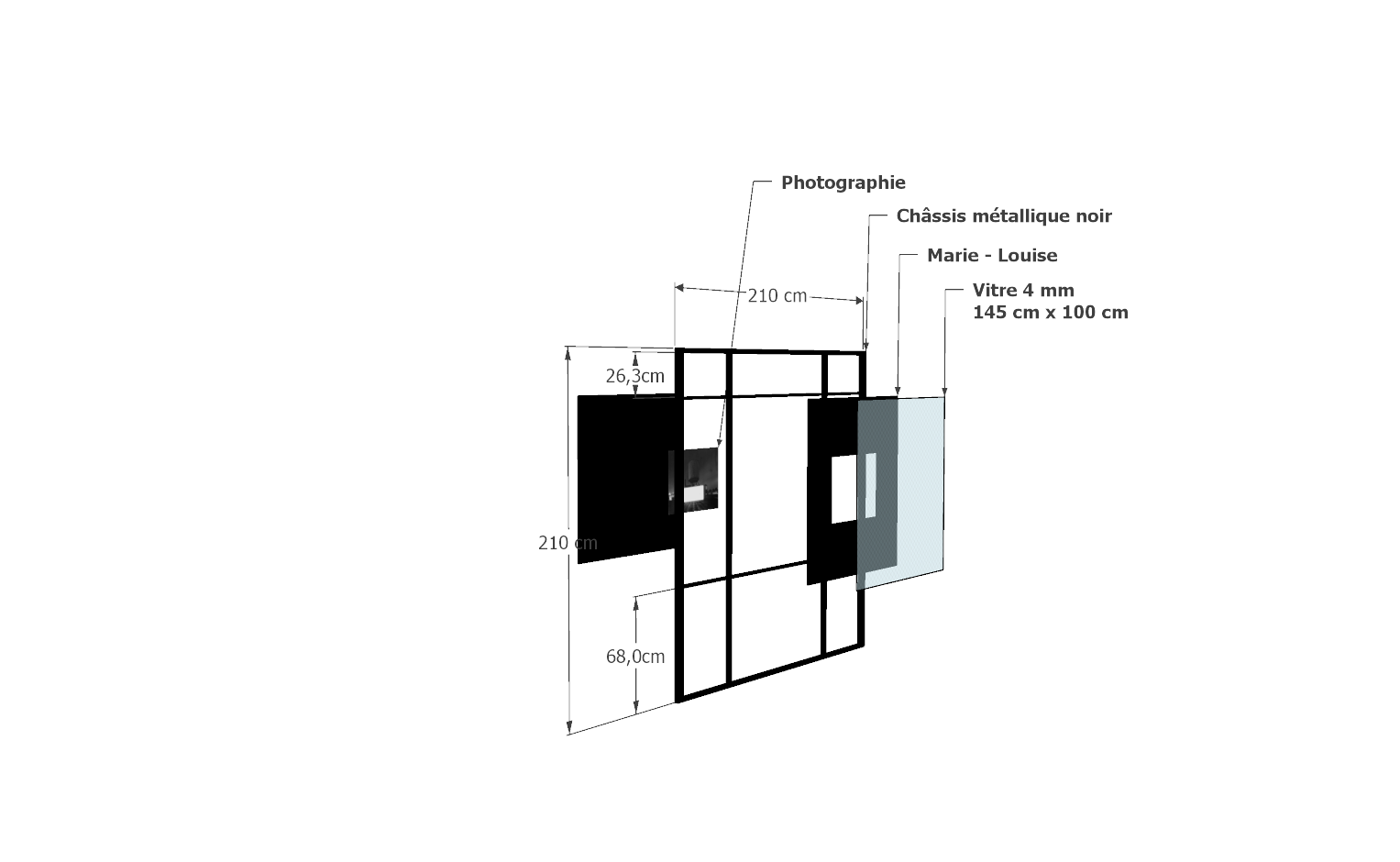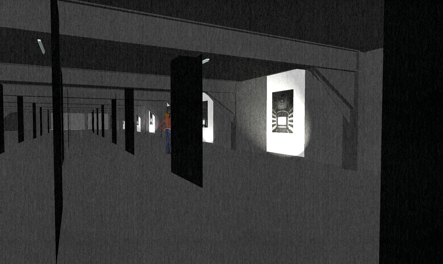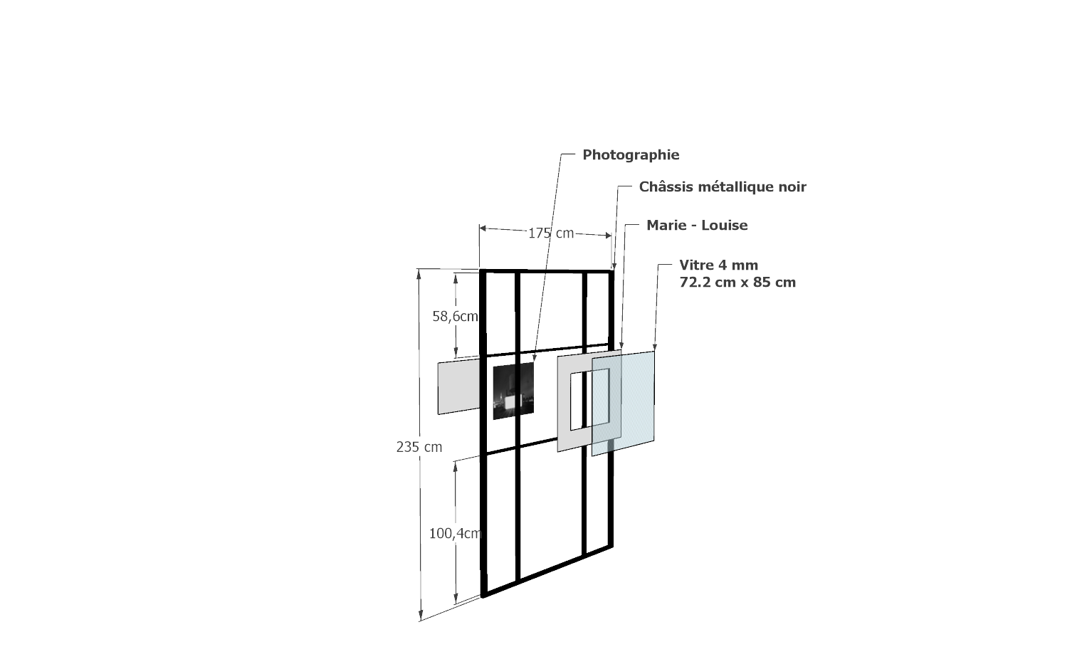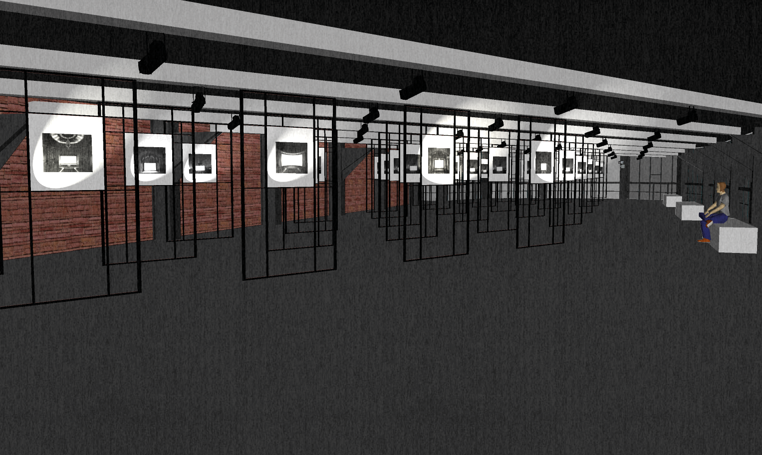 A chaque transition entre les salles, 3 photographies sont disposées dans chaque couloir.