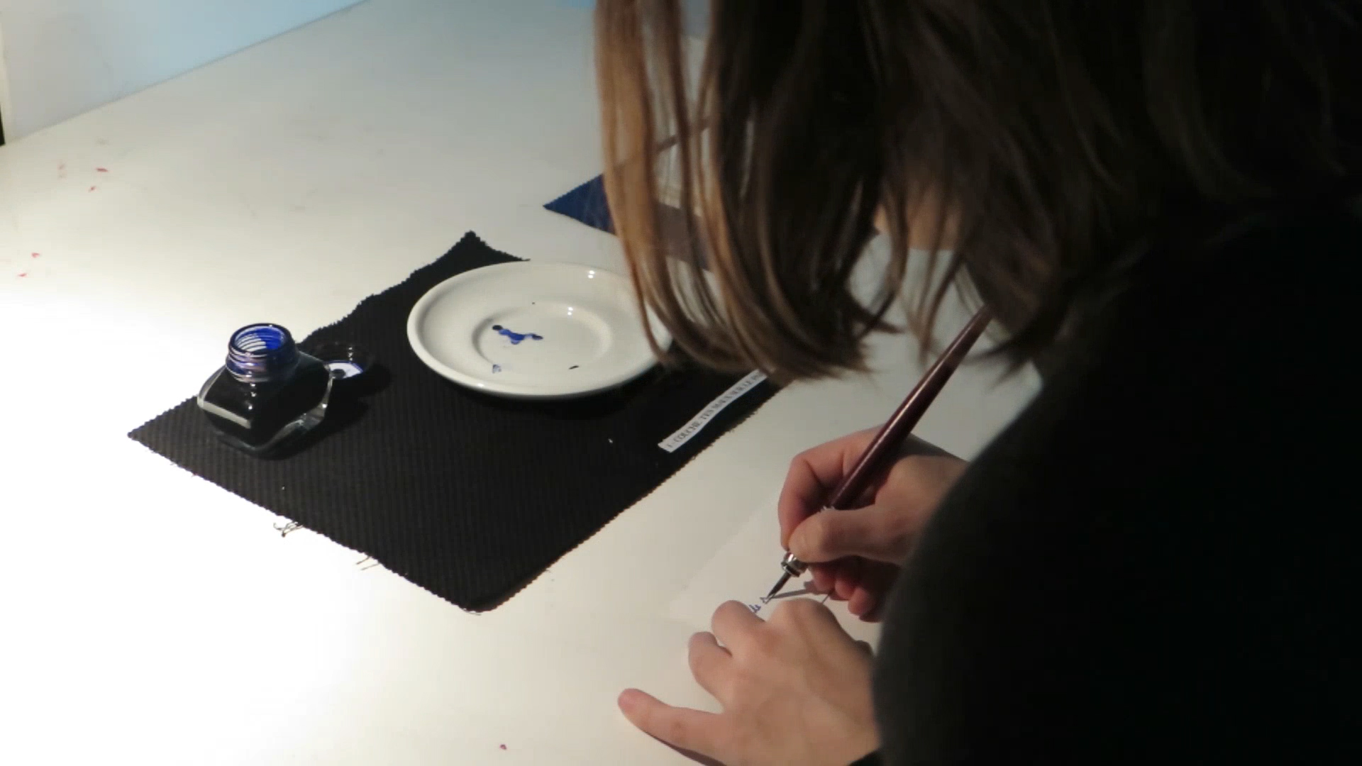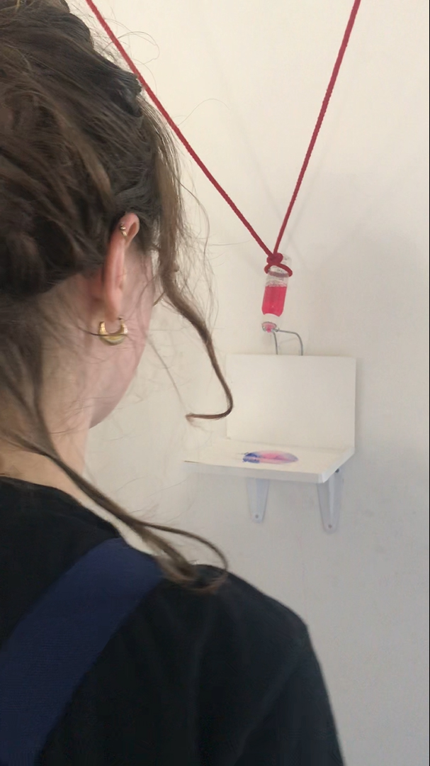 3. Traverse le rideau et vois la fiole se déverser goutte par goutte sur le papier.
